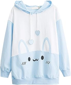Packitcute Bunny Hoodie Kawaii Print Loose Casual Pullover Hoodie Tops Blue Medium Amazon Com Au Clothing Shoes Accessories
